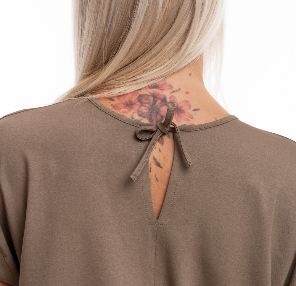 Csipkés részlettekkel díszített kényelmes mediterrán póló. Rugalmas viscose anyagból készült, eleje közepétől kontrasztos fehérrel kombinált, visszafogott kerek nyakkivágással és rövid ujjakkal. Kényelmes egész napos viselet, párosítsd farmerdzsekivel, farmerrel, szoknyával egy stílusos nyári napra.