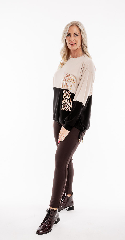 Stílust adhatsz őszi/téli megjelenésednek ezzel az elegáns pulóver felsővel. Harmónikus színű, laza vonalvezetésű, csípőnél húzózsinórral szabályozható divatos felső. Puha, rugalmas anyagból készült sziluett. Egyszerű, laza illeszkedés, időtálló esztétikát biztosít. Rendívül sokoldalú ruhadarab, amely ötvözi a klasszikus és a modern stílust. Derekát húzózsinórral tudod szabályozni. Könnyű tapintásával, kényelmes kialakításával egésznapos eleganciát biztosít. Minden méretben csinos megjelenést ad.