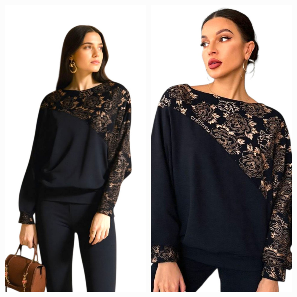 Formázott divatos passzés felső fekete-bronz vintage minta