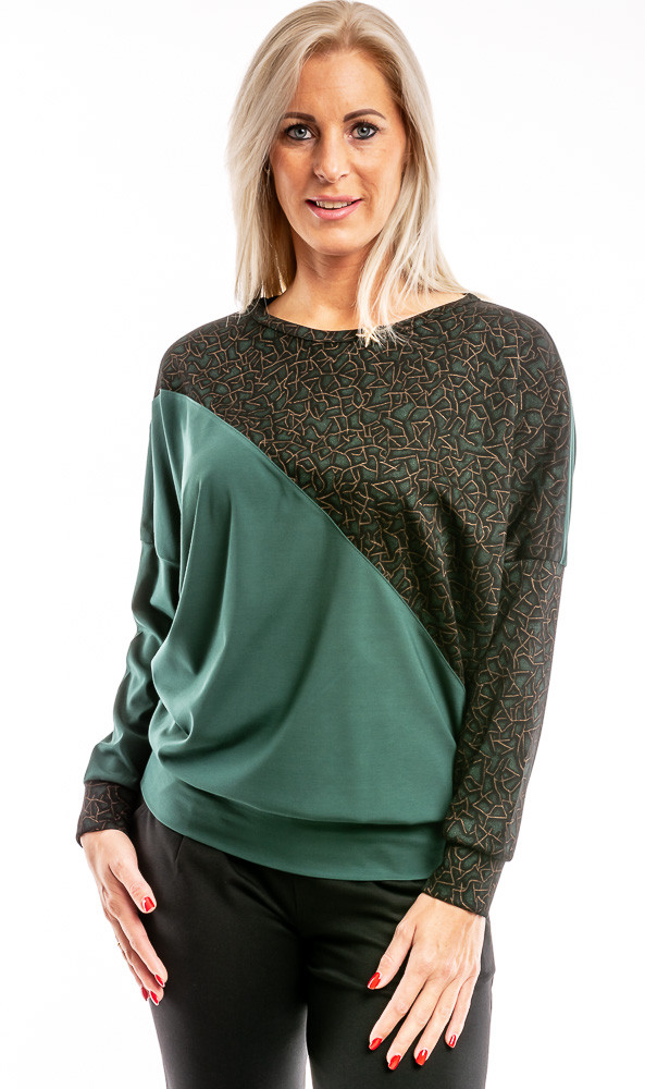 Ünnepi hangulatú hétköznapi felső. Modern elegancia, csillogó részletek. Kontrasztos megjelenés kombinációja elegáns megjelenést nyújt.