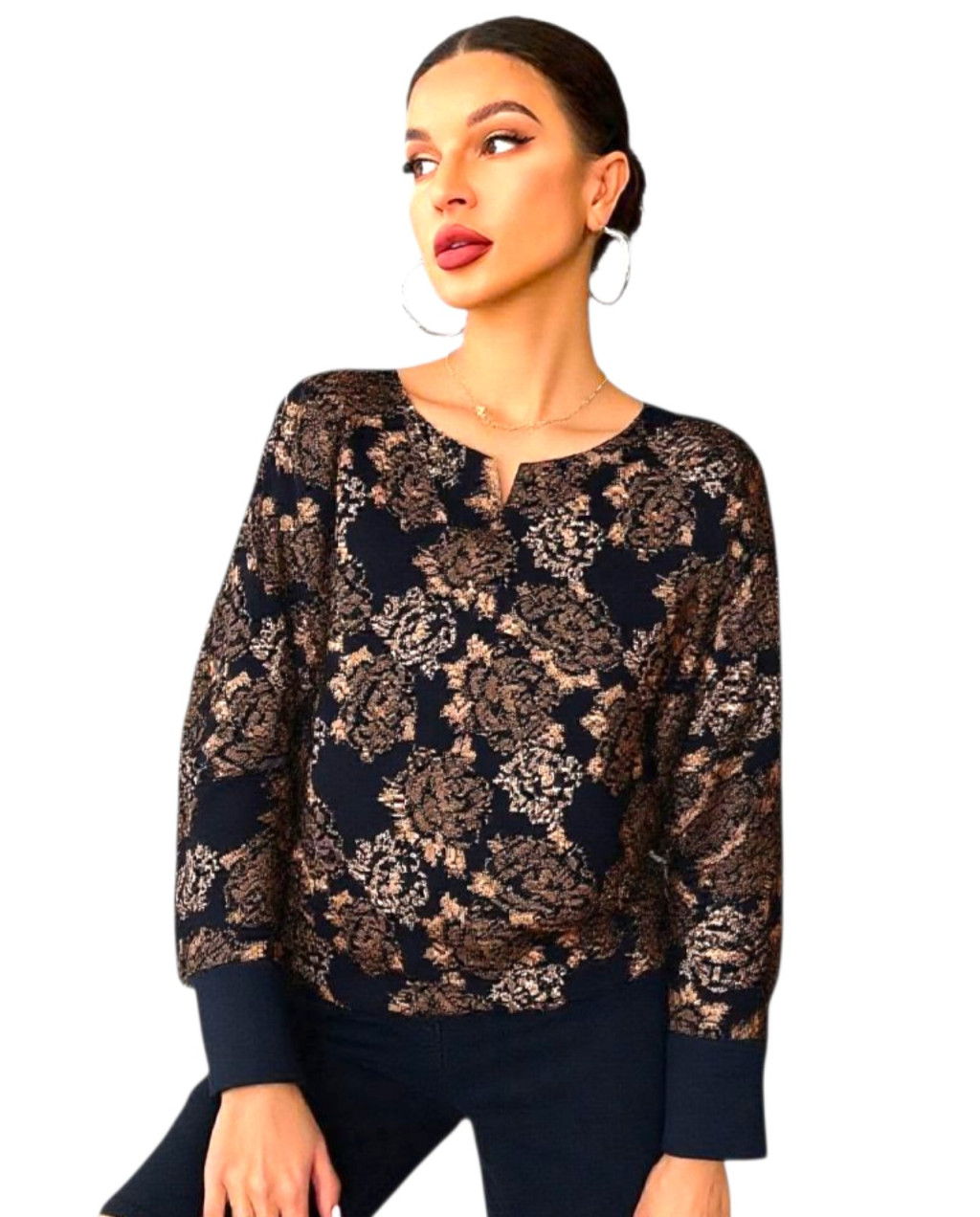 Puha, nőies, lazán illeszkedő elegáns blúz, szűkített madzsettával. Szabása, stílusa, ujjahossza, mintája és a színe adja eleganciáját, és tökéletessé teszi szinte bármilyen alkalmi eseményre. Egyedi kifinomult szabású sportosan elegáns blúz, ami biztosítja a kényelmet, és kiegészíti a stílusod. Rugalmas modal anyagból készült. Több méretet átölel, csípőt takaró modell, alján gumirozott. Mérete: M/L, XL/XXL, 3XL) Plus size méretben is dekoratív felső.