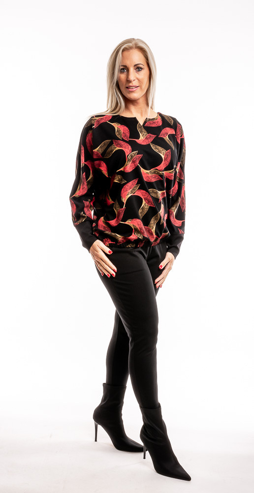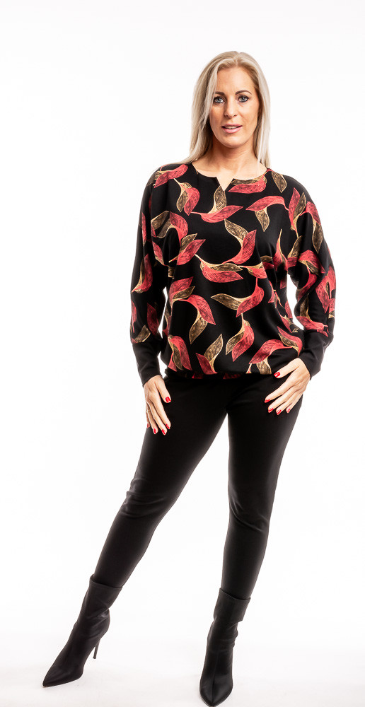 Puha, nőies, lazán illeszkedő elegáns blúz, szűkített madzsettával. Szabása, stílusa, ujjahossza, mintája és a színe adja eleganciáját, és tökéletessé teszi szinte bármilyen alkalmi eseményre. Egyedi kifinomult szabású sportosan elegáns blúz, ami biztosítja a kényelmet, és kiegészíti a stílusod. Rugalmas modal anyagból készült. Több méretet átölel, csípőt takaró modell, alján gumirozott. Mérete: M/L, XL/XXL, 3XL) Plus size méretben is dekoratív felső.
