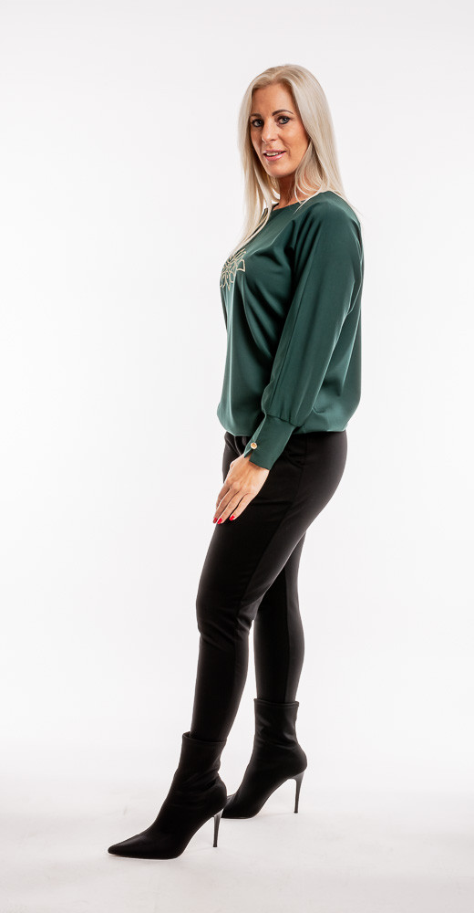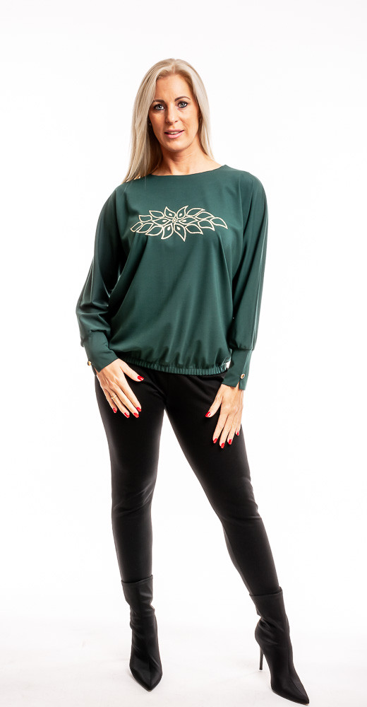 Puha, nőies, lazán illeszkedő elegáns blúz, szűkített madzsettával. Szabása, stílusa, ujjahossza, mintája és a színe adja eleganciáját, és tökéletessé teszi szinte bármilyen alkalmi eseményre. Egyedi kifinomult szabású sportosan elegáns blúz, ami biztosítja a kényelmet, és kiegészíti a stílusod. Rugalmas modal anyagból készült. Több méretet átölel, csípőt takaró modell, alján gumirozott. Mérete: M/L, XL/XXL, 3XL) Plus size méretben is dekoratív felső.