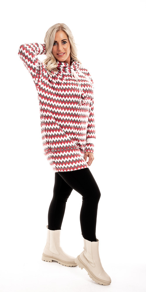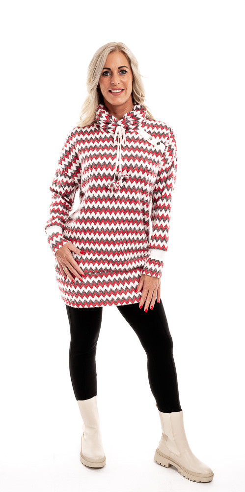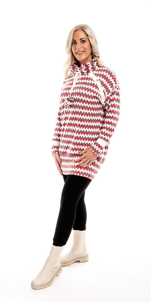 Téli mintás, meleg, kötött pulóver. Sokoldalú, szerethető divatja a télnek. Színe és mintája a téli, karácsonyi időszak alapeleme. Nyakrésznél hangsúlyos, az alsó passzé a csípőt kiemeli . Kontrasztos színek, finoman elhelyezett díszítések erősítik a télies vonzerőt. Minden testtípusnak hízelgő. Egy mutatós csízma, bakancs ceruza nadrággal sokat lendít az outfiten.