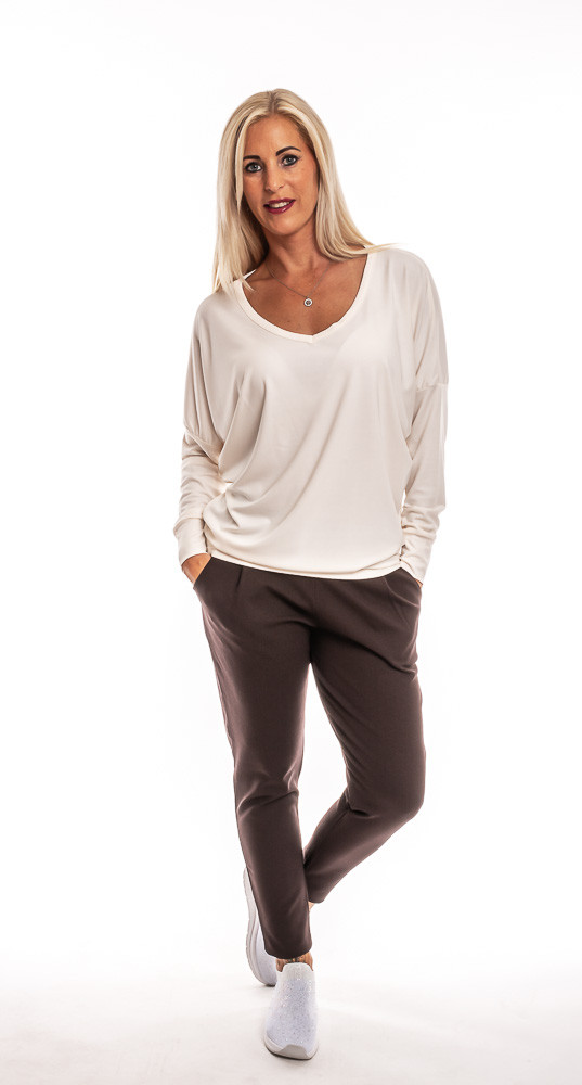 Kényelmes basic hosszított felső, amely a laza mégis kifinomult megjelenésre összpontosít. Színe, szabásvonala dominál, amit könnyen kombinálhatsz kiegészítőkkel. A felső fazonja ejtett vállú: felül bővebb és lefelé enyhén szűkül, hátulja enyhén hosszabb. Optikailag előnyösen láttat, karcsúsítja viselőjét. Csípőt takaró fazon. Reggeltől estig hordhatod. Szuper kényelmes, mégis trendi és nőies. Nincs kifejezetten mérethez igazítva, így akár vékonyabb akár teltebb hölgyek is felvehetik egyaránt. Hétköznapokra remek választás. Kiegészítőkkel egyedi megjelenést ad. Farmerrel, leggingsszel kiváló, kényelmes viselet.