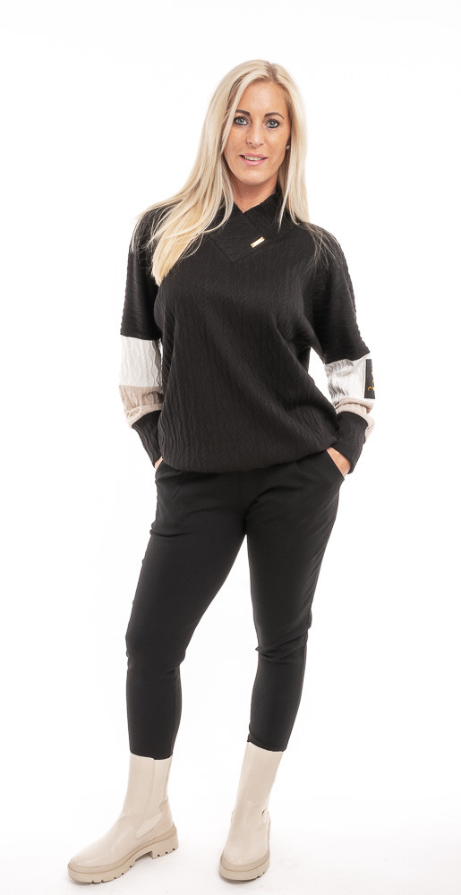 Csavart mintás, puha, nőies, lazán illeszkedő kötött felső. Szabása, stílusa, mintája és a színe adja télies eleganciáját. Sportosan elegáns kötött felső, ami biztosítja a kényelmet, és a réteges öltözködést. Rugalmas, közepesen vastag kötött anyagból készült, több méretet átölel. Csípőt takaró modell, alján gumirozott. Mérete: M/L, XL/XXL, 3XL) Plus size méretben is dekoratív felső.